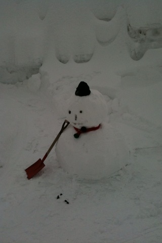 リフトを降りたとこに雪だるまが居て、