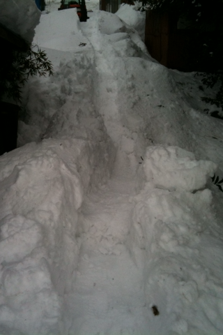 最初は人目につく場所(田んぼ)でやろうと思ったけど、そこへ行くには大きな雪の壁が;