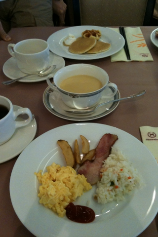 最上階のレストランで朝食。